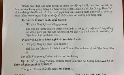 THÔNG BÁO về việc thực hiện thu phí của Đoàn Luật sư tỉnh An Giang